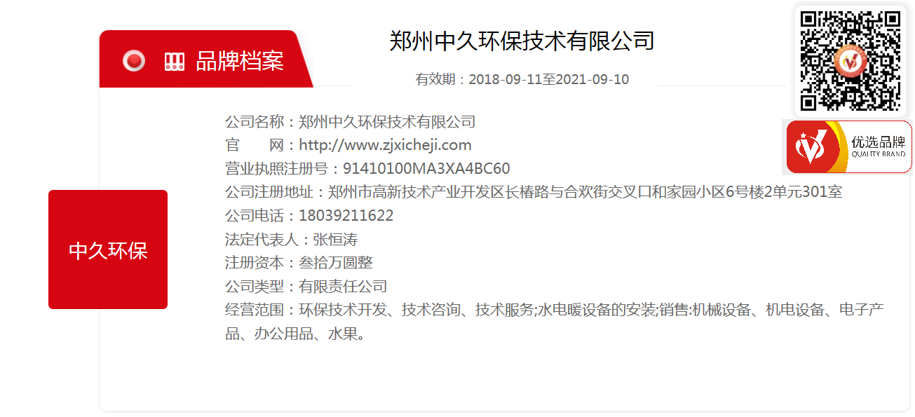 中久環(huán)保榮獲CCTV中國優(yōu)選品牌檔案 掃碼可查看檔案